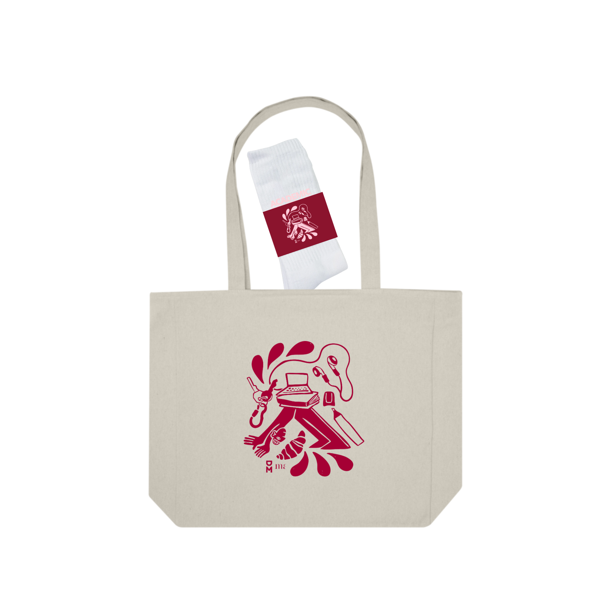 Stor rummelig totebag med lynlås i fuld længde og indvendig lomme til nøgler og småting. Kombineret med bløde sokker, der er behagelige at have på hele dagen. God til både weekendture, træning og hverdage på farten.